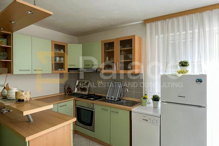 Lokacija je izvrsna, udaljena samo 300 metara od mora i centra Pakoštana, što omogućuje lagan pristup svim važnim sadržajima, uključujući trgovine, restorane i plaže. Apartman se prodaje potpuno namješten, kao što je prikazano na slikama, što čini ovu ponudu izuzetno praktičnom za nove vlasnike.