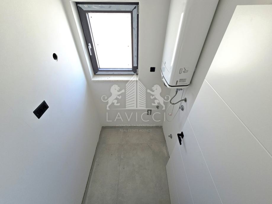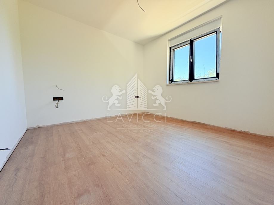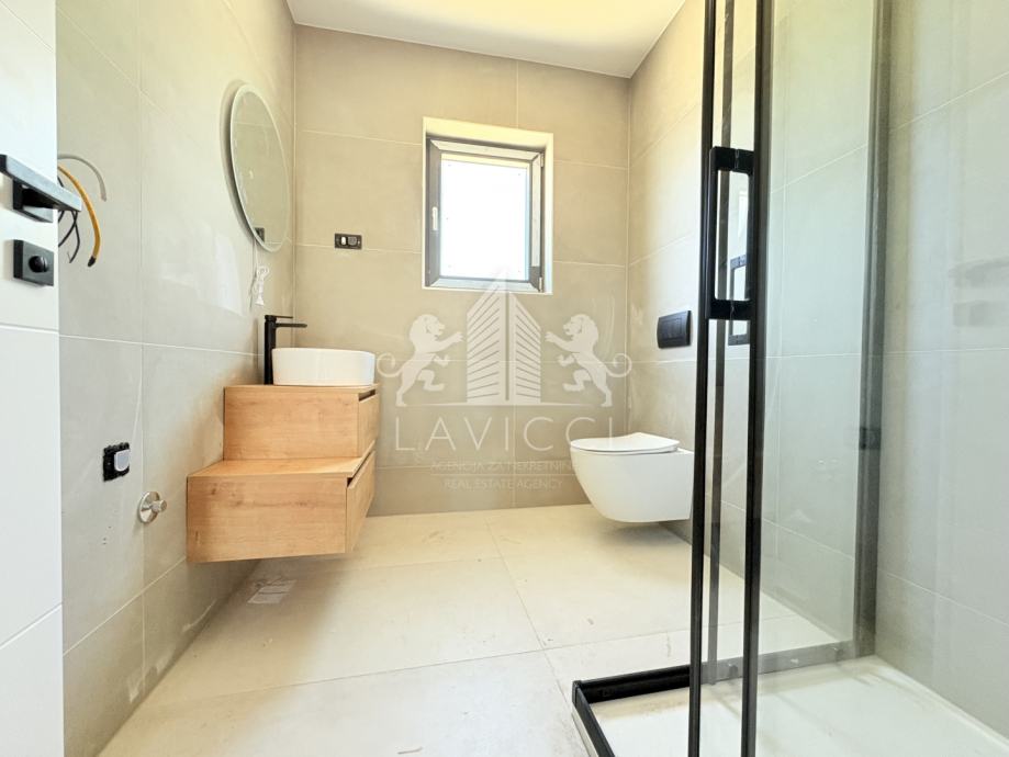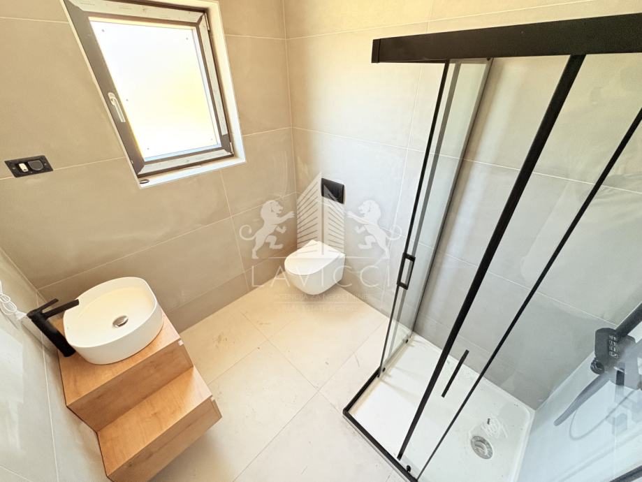 Zgrada je građena od kvalitetnog ciglenog termo bloka, s fasadom obloženom stiroporom debljine 10 cm, što jamči visoku energetsku učinkovitost. Ugrađena je PVC stolarija s aluminijskim roletama i komarnicima, a za grijanje i hlađenje predviđeni su klima uređaji u dnevnom boravku i spavaćim sobama. Dodatnu udobnost pruža podno grijanje, a kombinacija keramičkih pločica i laminata osigurava elegantan i praktičan interijer. Sigurnost stanara osigurana je kroz protuprovalna i protupožarna ulazna vrata.