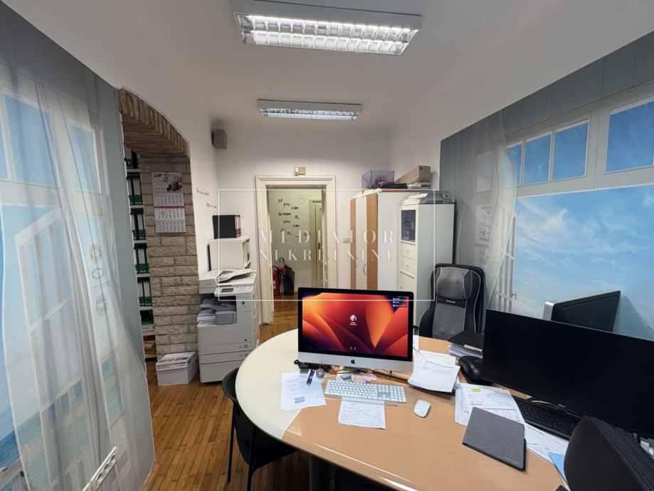 Stan ukupne površine 60,06 m² sastoji se od dvije prostrane sobe, kuhinje, kupaonice i hodnika. Prostor je dobro osvijetljen i praktično raspoređen, s potencijalom za različite namjene. Trenutno se koristi kao ured, no riječ je o pravno i funkcionalno stambenom prostoru, što otvara mogućnosti za korištenje prema vlastitim potrebama – za život, dugoročni najam ili turističku djelatnost.
