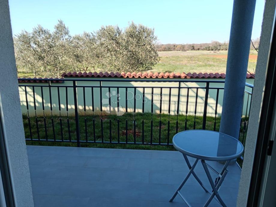 Prodaje se kompletno novo opremljen stan na drugom katu moderne zgrade, smješten u mirnom naselju Valtura, svega 10 minuta vožnje (cca 9 km) od centra Pule i svih bitnih sadržaja.