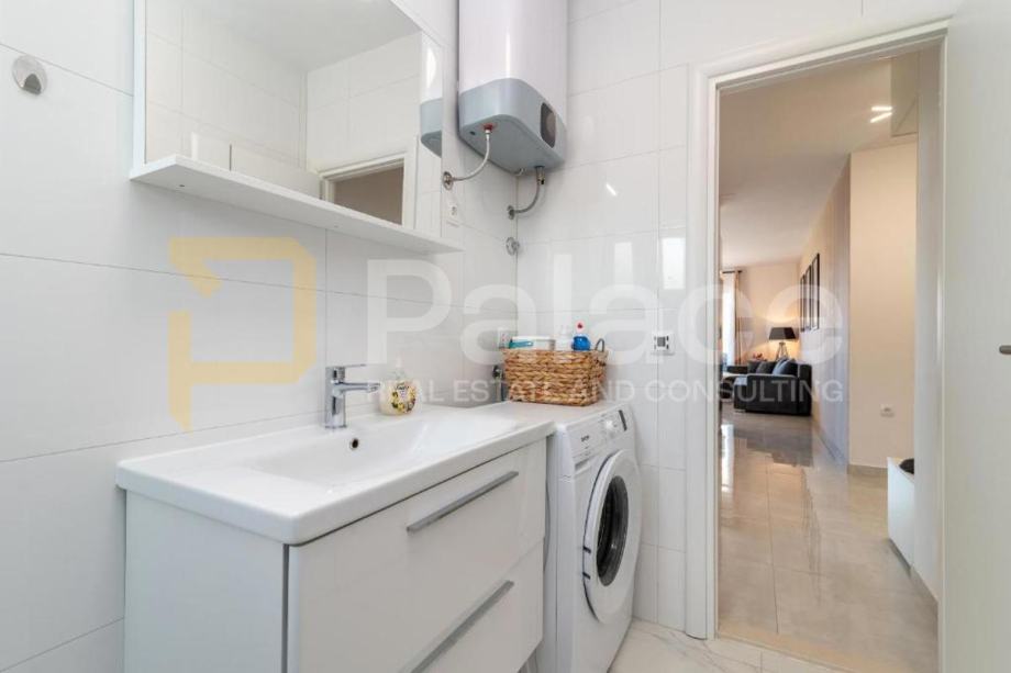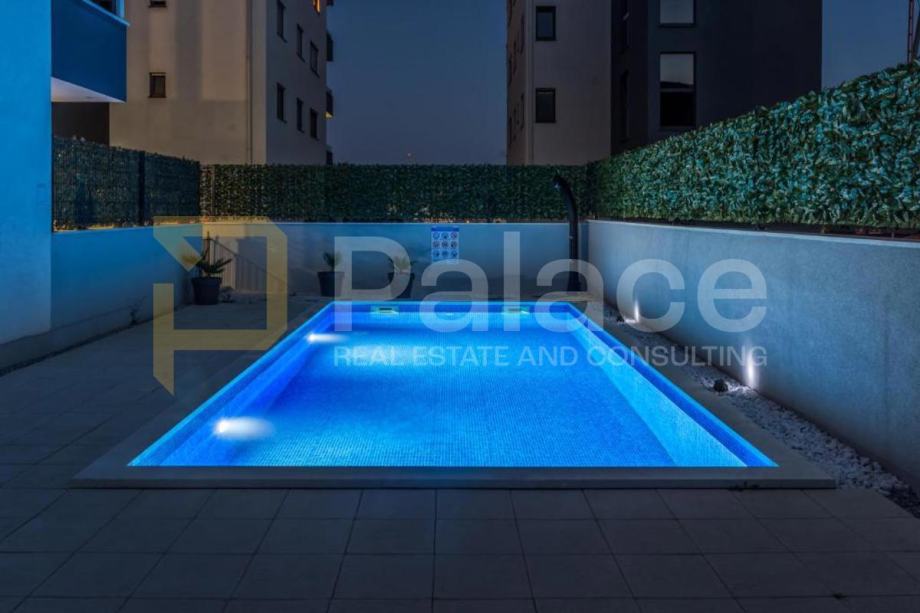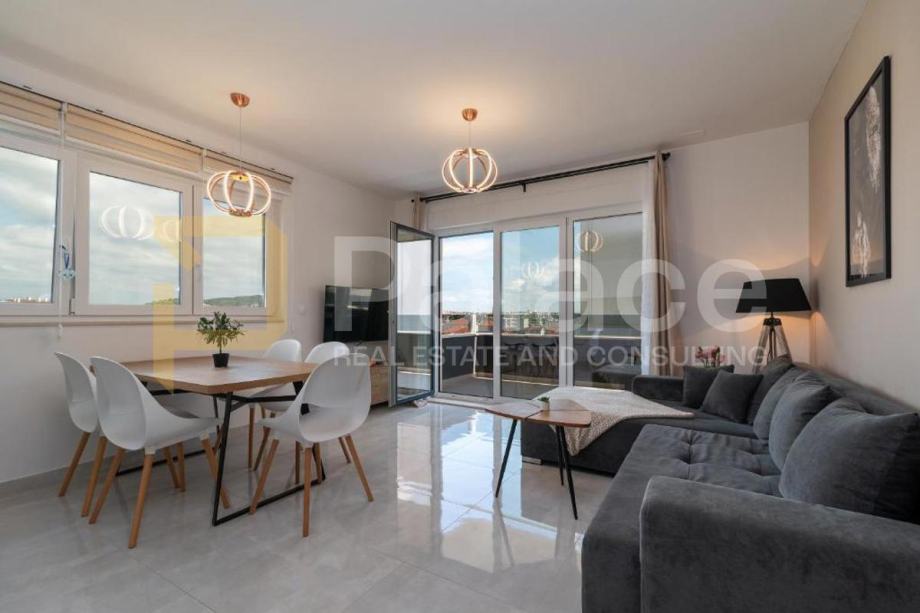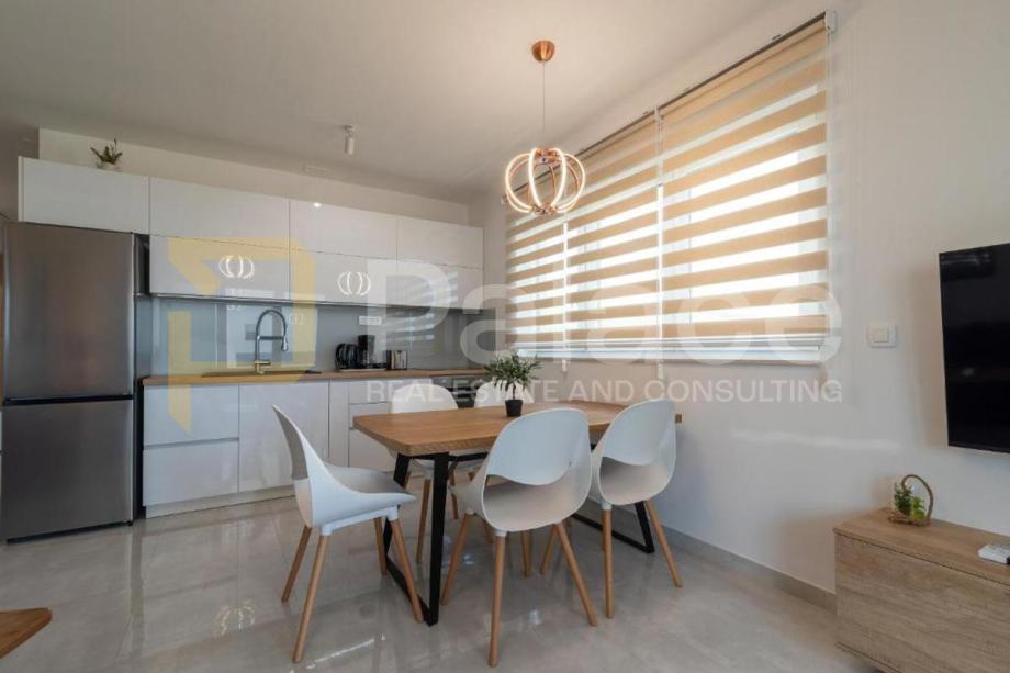 Stan se nalazi u zgradi koja je izgrađena prije četiri godine, a pripada mu jedno vanjsko parkirno mjesto od 12,50 m² koje je uključeno u cijenu stana te zajednički bazen na korištenje.