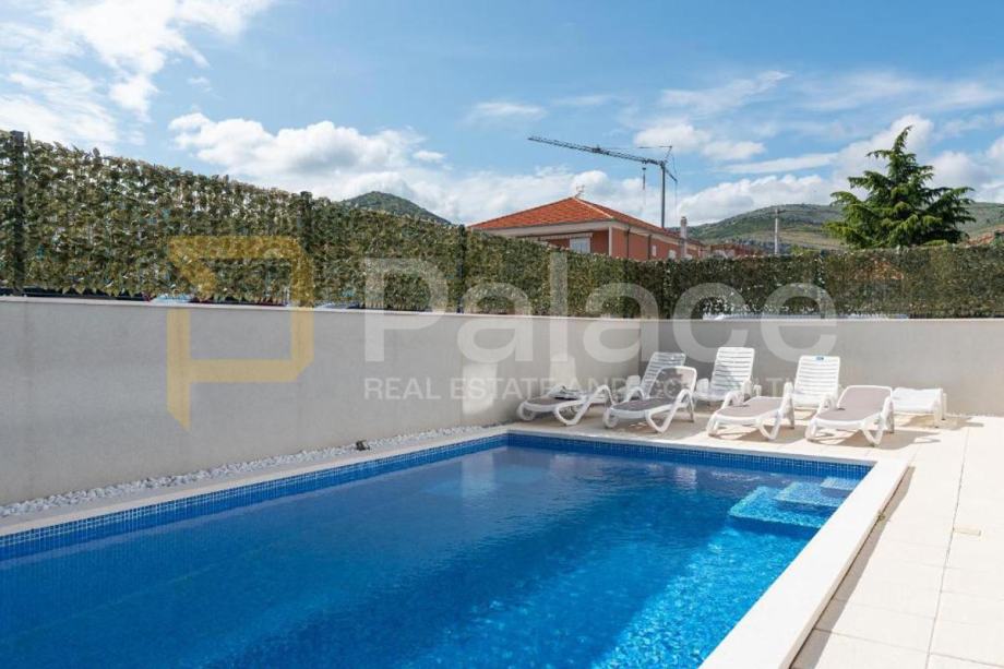Posredujemo u prodaji lijepo uređenog, komfornog dvosobnog stana u Seget Donjem.Stan se nalazi na drugom katu manje stambene zgrade koja je udaljena od mora svega 400 m te 200 m od Trogira.Stan je ukupne stambene površine od 64 m², a sastoji se od kuhinje s blagovaonicom i dnevnim boravkom, dvije spavaće sobe, kupaonice, predsoblja, hodnika i lođe površine 10,70 m².