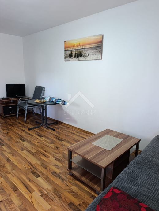 Stan se nalazi u visokom prizemlju, a sastoji se od kuhinje sa blagovaonicom, dnevnog boravka, spavaće sobe, kupaonice i natkrivene terase. Pripada mu vanjsko parkirno mjesto.