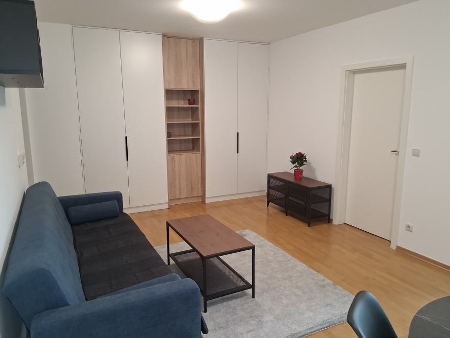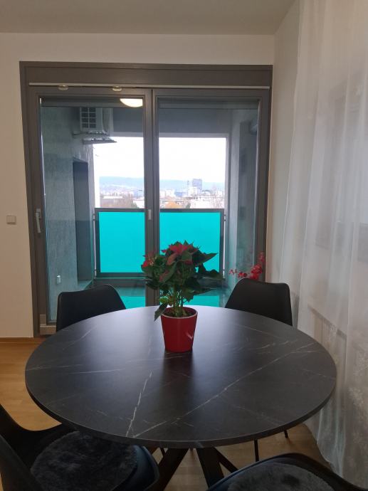 Iznajmljuje se moderno uređen i atraktivan stan (47 m2) na 6. katu u novijoj zgradi na Savici. Zgrada je građena 2010. godine, a stan je potpuno renoviran te se daje u prvi najam nakon renovacije. Potpuno nova kupaonica te sav novi namještaj (novi krevet, kauč, ugradbeni ormari).