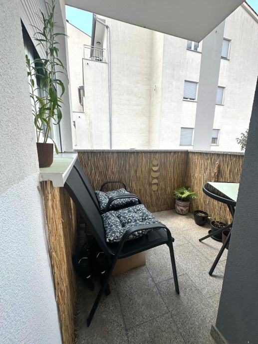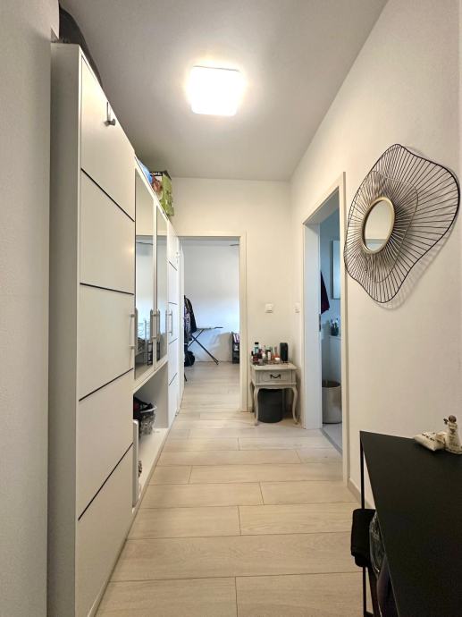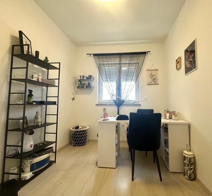 Stan se sastoji od dvije spavaće sobe, dnevnog boravka, kuhinje s blagovaonicom, hodnika, kupaonice te terase. U vlasništvu je i jedno parkirno mjesto.