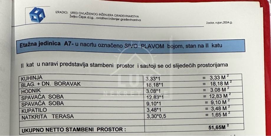 Stan u poslovno-stambenoj zgradi, dvosoban, pov. 51.65 m2, Zadar (Sinjoretovo).