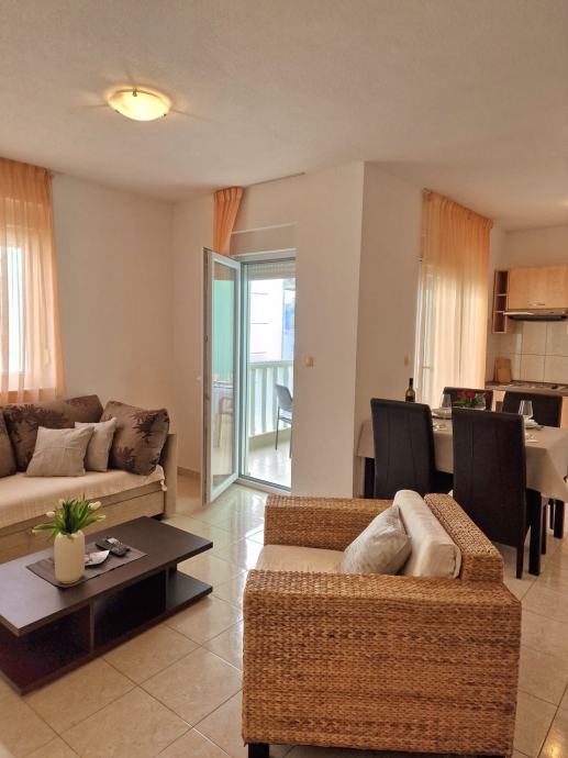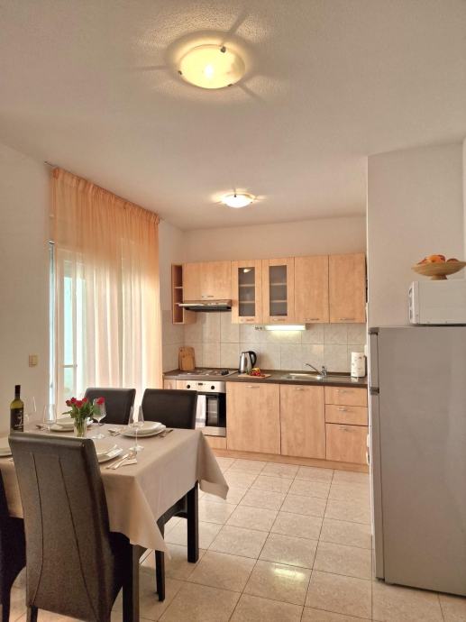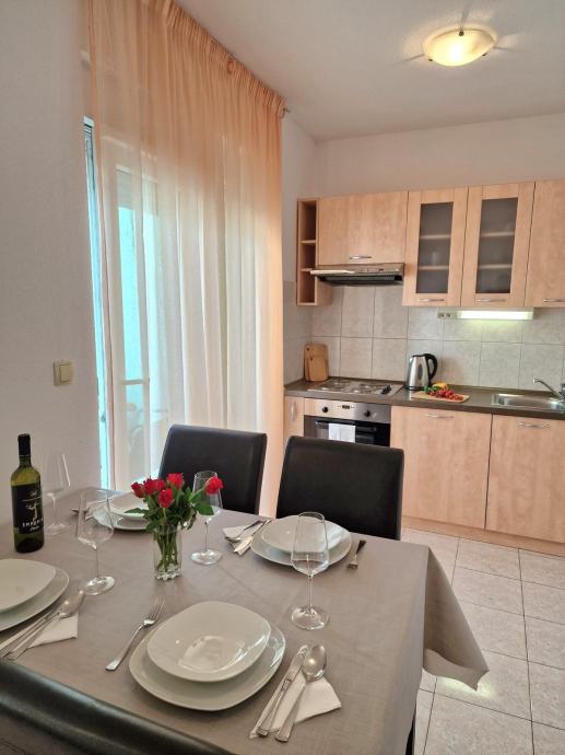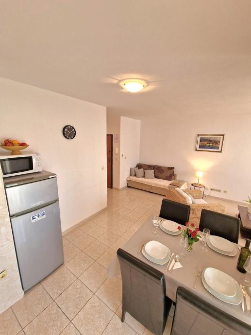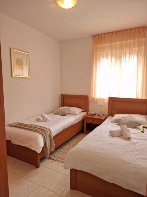 We mediate the rental of a two-room apartment located on Čiovo, Mastrinka district. Only a few minutes' drive from Trogir and all essential and necessary amenities, this apartment offers a vacation in a peaceful environment. The beach is only a few minutes' walk away, and the building has four swimming pools that tenants can use. The apartment is located on the upper ground floor, has 59m2, two bedrooms, bathroom, kitchen with dining room, living room and balcony. It also has a secured parking space. It is rented for the period from December 1, 2025. until 01.06.2026. The monthly rent is €500. CONTACT: 0915616295 (ANDREA)