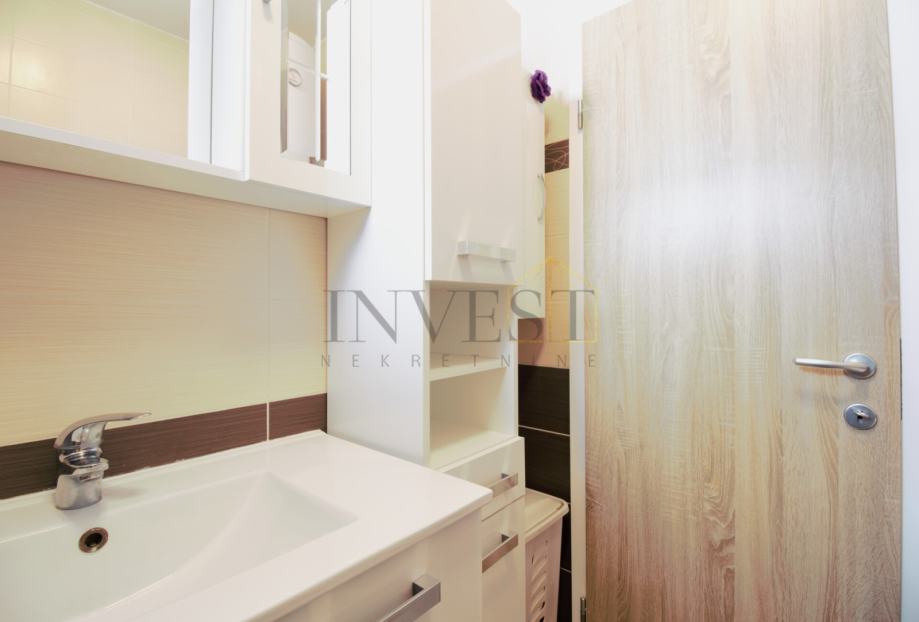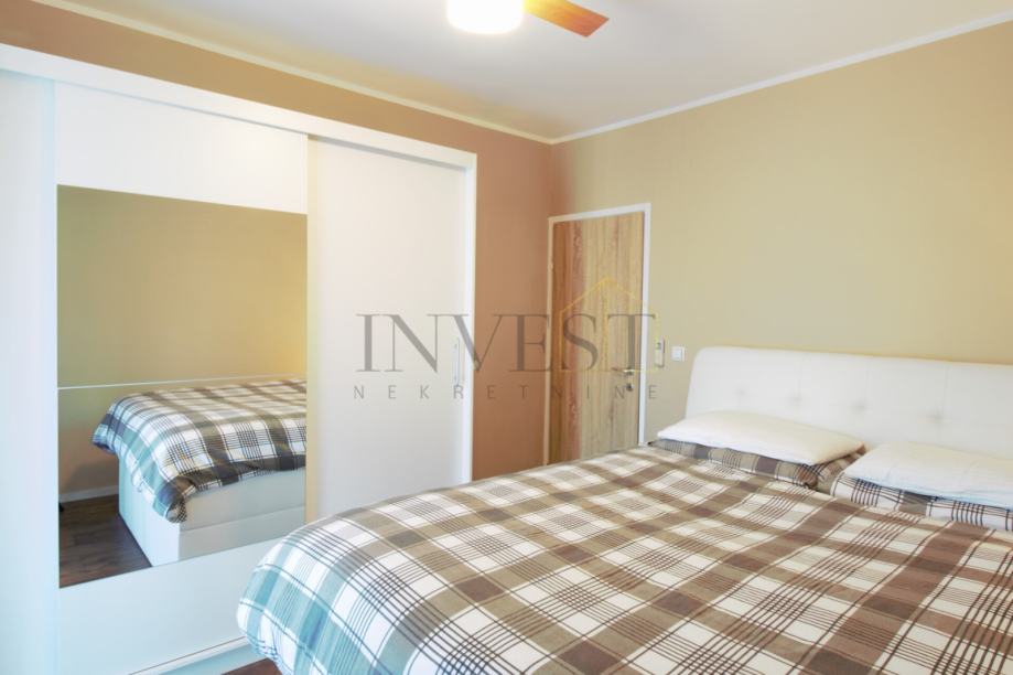 Posredujemo u prodaji komfornog dvosobnog stana na predjelu Kman. Stan se nalazi na prvom katu stambene zgrade, na mirnoj i ugodnoj lokaciji u neposrednoj blizini svih sadržaja potrebnih za svakodnevni život (trgovine, škola, vrtić, javni prijevoz i sl.). Ukupna površina stana iznosi 62 m², a funkcionalan raspored obuhvaća prostrani dnevni boravak i kuhinju s blagovaonicom, dvije spavaće sobe, hodnik,kupaonicu te lođu. Iz dnevnog boravka i jedne spavaće sobe izlazi se na lođu. Orijentacija stana je istok–sjever, što prostoru osigurava ugodnu prirodnu svjetlost tijekom dana.