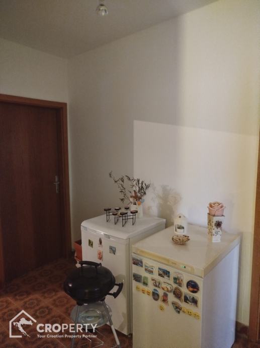 • Sastoji se od dnevnog boravka povezanog s blagovaonicom i kuhinjom južne orijentacije, dviju spavaćih soba i kupaonice s WC-om.