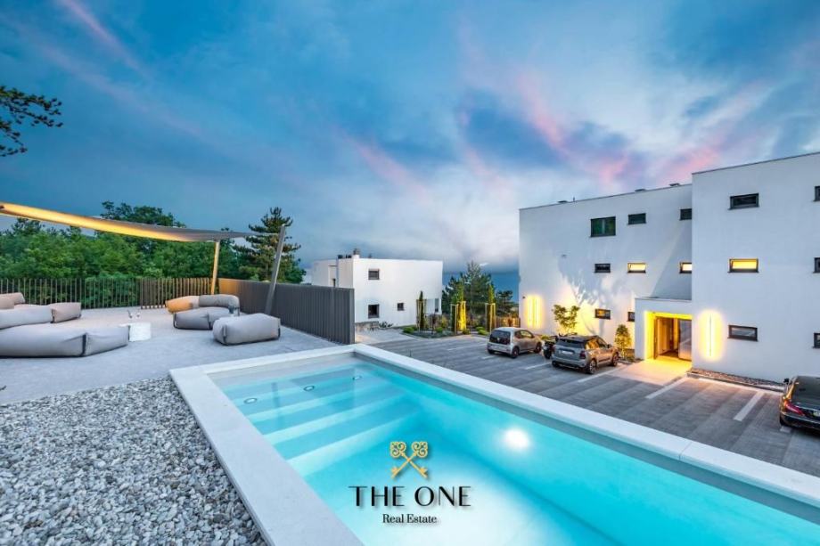Također, stan ima na korištenje zajedničke prostorije, teretanu, dječju igraonicu te vanjski grijani bazen sa sunčalištem.