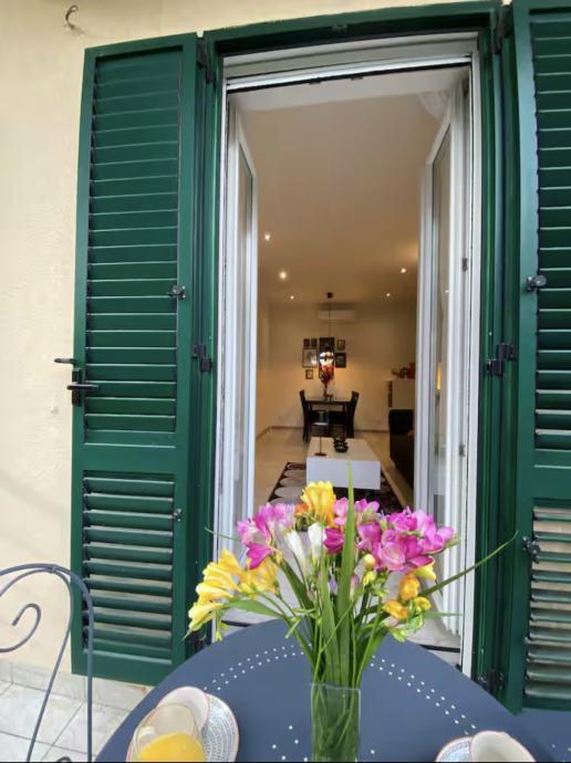 The apartment is located on the first floor, in an older building.