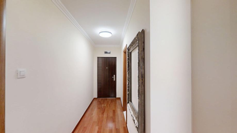 Sastoji se od hodnika, kuhinje, blagovaonice, dnevnog boravka, dvije spavaće sobe, kupaonice te balkona.