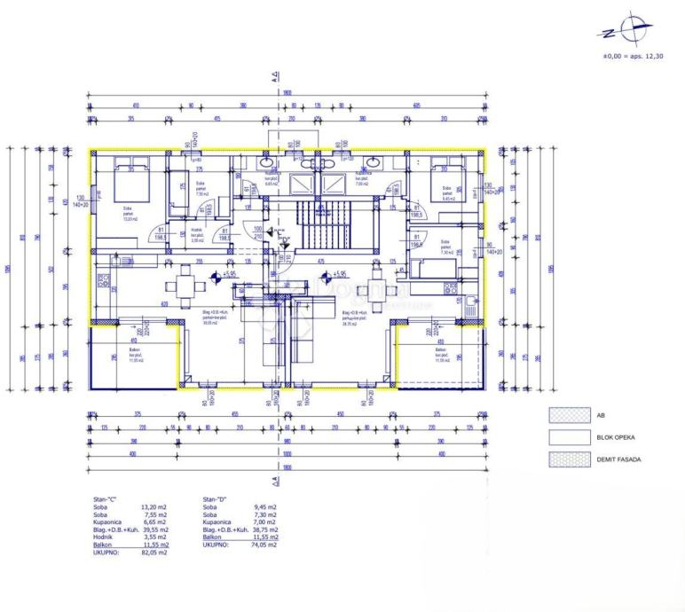 ukupna stambena površina: 82,05 m²