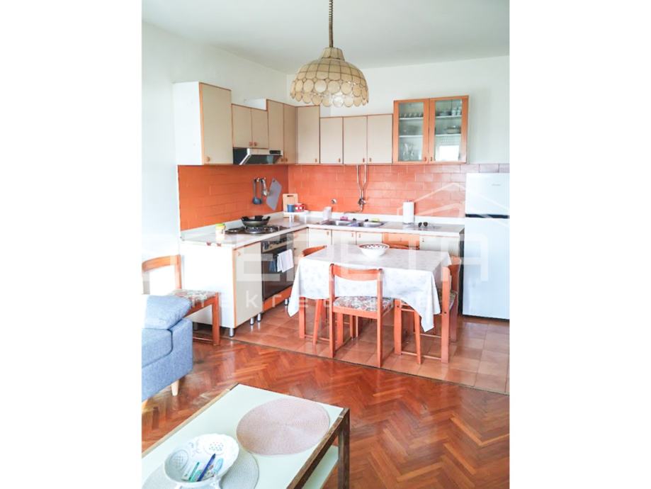 Stan površine 60 m² funkcionalnog je rasporeda te se sastoji od dnevnog boravka, kuhinje, dvije spavaće sobe, kupaonice, zasebnog toaleta, hodnika i balkona. S balkona se pruža lijep pogled na more i grad, što ovom stanu daje dodatnu vrijednost i ugodan ambijent za svakodnevni boravak.