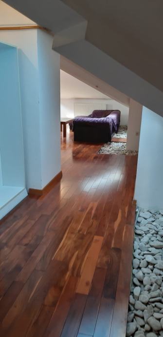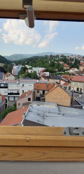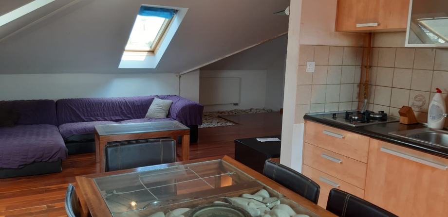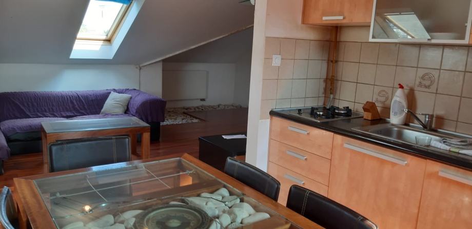 Stan u potkrovlju novije zgrade sa liftom,etažno centralno.Stan se sastoji od veče sobe sa bračnim krevetom,manja soba sa jednim krevetom,dnevna soba,kuhinja sa blagavaonom,kupaona.Osiguran vanjski parking!
