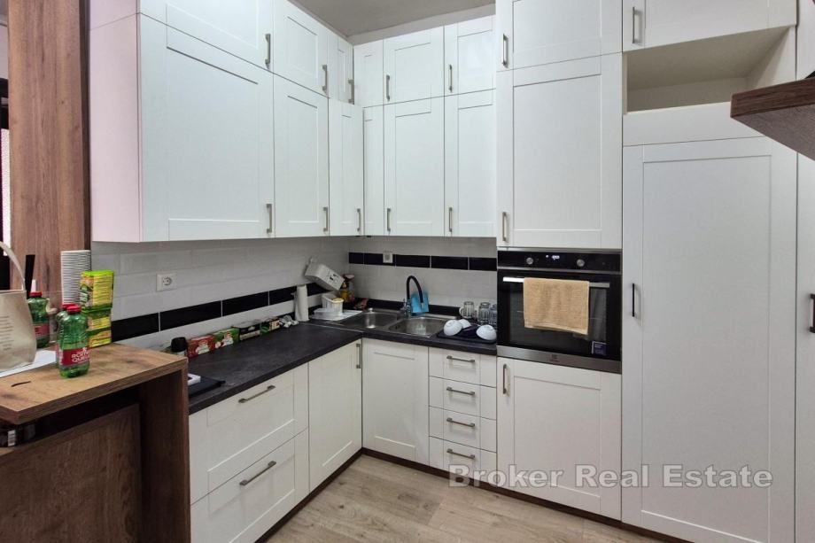 Stan se nalazi u Donjem gradu, na prvom katu manje stambene zgrade s dva kata i tavanskim prostorom koji služi kao spremište. Potpuno je adaptiran i novouređen 2024. godine te oblikovan u otvorenom konceptu s funkcionalnim rasporedom. Prostrani dnevni dijelovi povezani su s prostorima koji se mogu prilagoditi različitim potrebama, primjerice radnom kutku ili kućnom uredu. Grijanje je riješeno centralnim plinskim etažnim sustavom. Zgrada je uredno održavana, posjeduje energetski certifikat, građevinsku i uporabnu dozvolu. Iako nema vlastito parkirno mjesto ni lift, stan pruža ugodan i praktičan prostor za svakodnevni život.