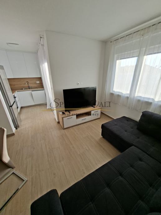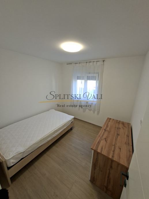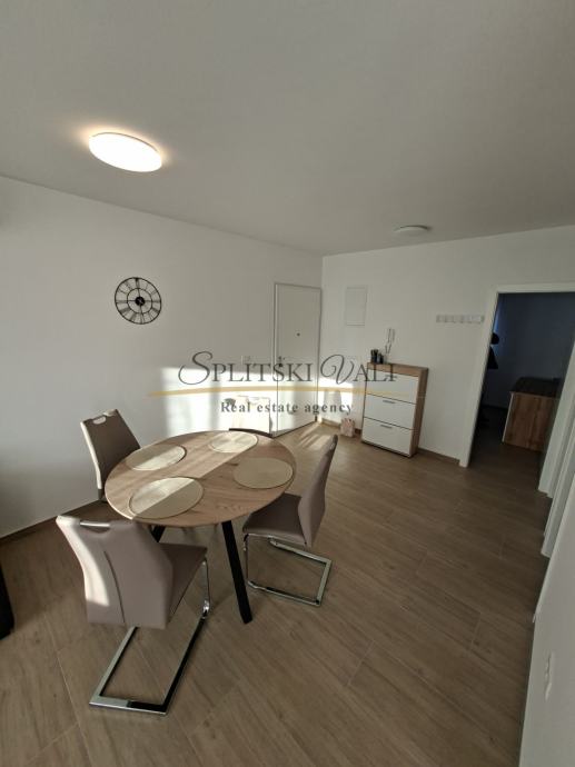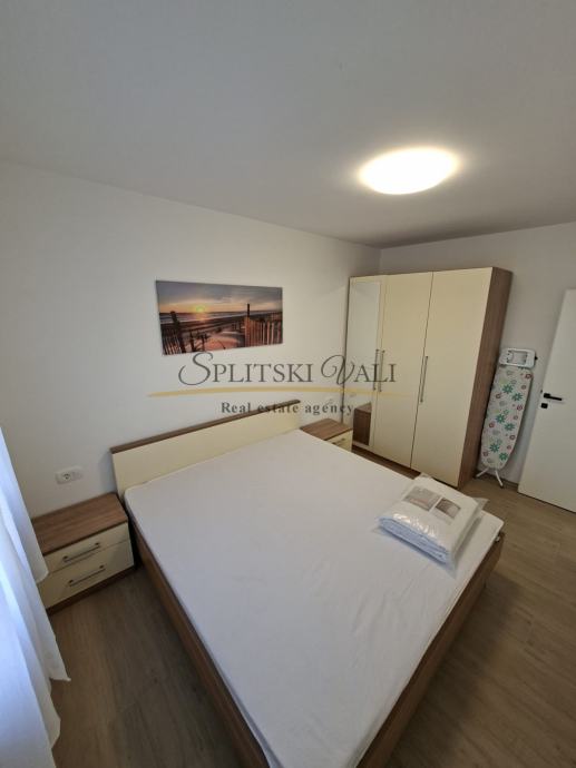Iznajmljuje se potpuno namješten dvosobni stan od 57 m², smješten na drugom katu stambene zgrade, gradnja 2024.godina u mirnoj i tihoj ulici, svega 300 metara od centra Trogira. Stan se sastoji od dnevnog boravka s kuhinjom i blagovaonicom, dvije spavaće sobe, kupaonice i balkona zapadne orijentacije. Opremljen je podnim grijanjem, klimom, perilicom rublja i perilicom posuđa. Kućni aparati nisu do sada korišteni. U cijenu najma uključeno je i osigurano parkirno mjesto.