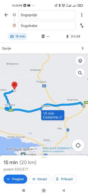 20 min vožnje od Splita (22 km od Splita), 2 km od izlaza Vučevica sa autoputa A1, 15 min od Dugopolja