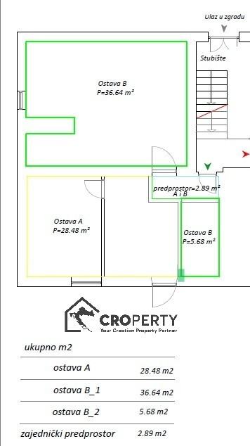 Uz ostave se nalazi zajednički predprostor površine 2,89 m², koji koriste samo dva vlasnika.