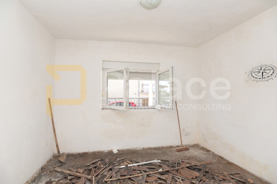 U etažiranoj kući, prodaje se stan stambene površine 57,52 m2. Trenutno stanje nekretnine je za potpunu renovaciju. Sastoji se od dvije spavaće sobe, kuhinje, blagovaonice i dnevnog boravka, te hodnika i kupaonice. Pripada mu i spremište, natkriveni prolaz, betonirano dvorište površine 26 m2 i jedno parkirno mjesto. Stan je osunčan i zaista lijepa prilika za stvaranje obiteljskog doma ili nekretnine za najam.