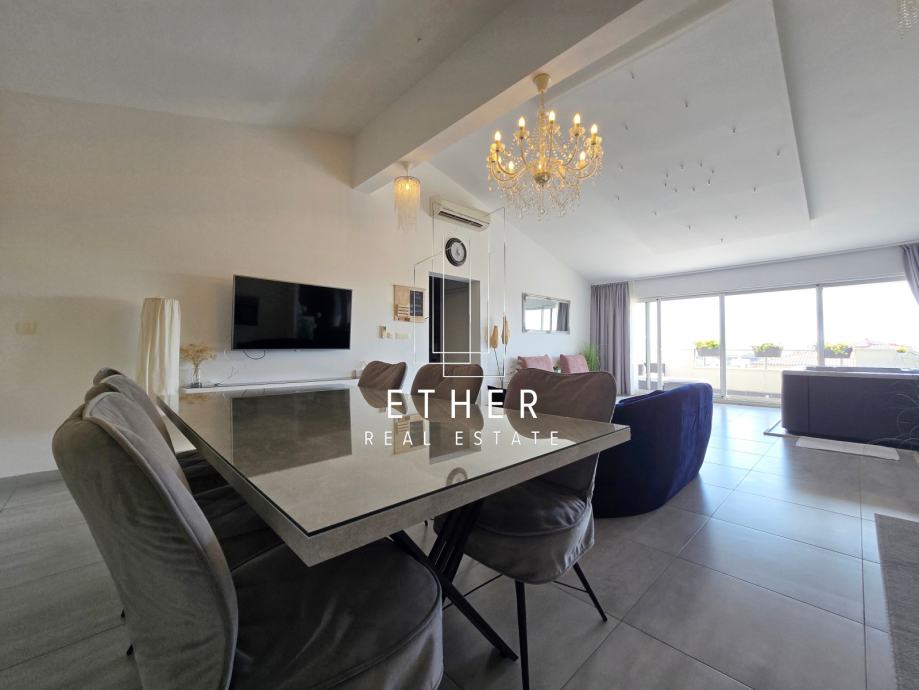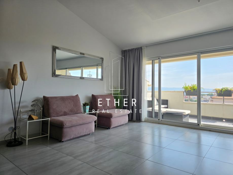 It consists of an entrance area, kitchen with dining room and living room, two bedrooms, two bathrooms and balcony with sea view.