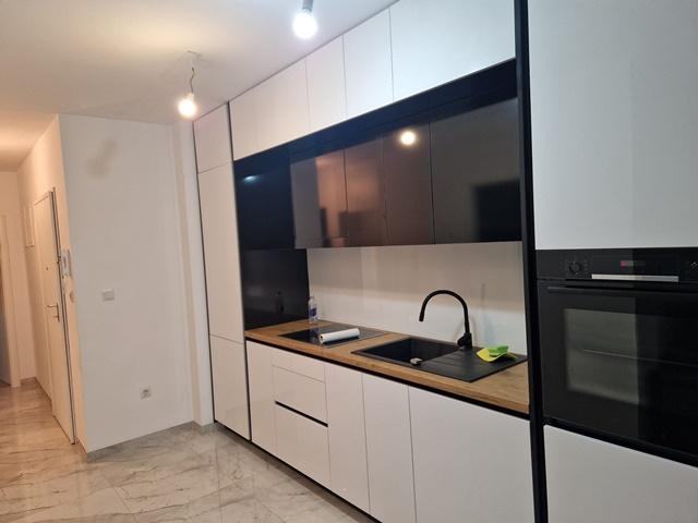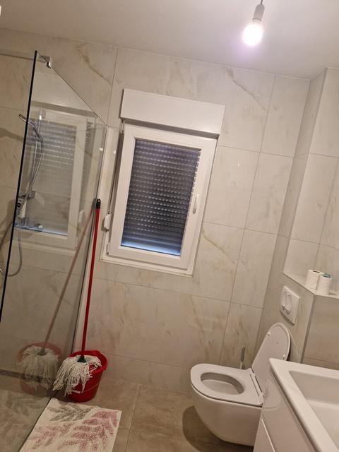 Dvosoban stan na kamenu, smješten na prvom katu novije stambene zgrade. orijentacija sjever-jug. Dvije spavaće sobe, kupatilo, kuhinja sa dnevnim dijelom sa izlazom na veliku lođu. Namješteno (u cijeni). Pripadaju mu dva parking mjesta.