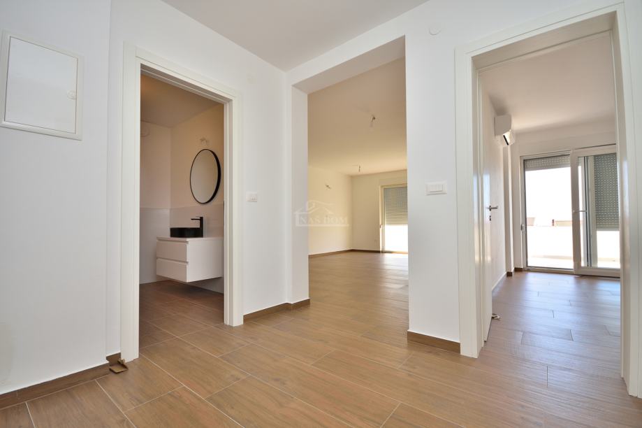 Vodice-*NOVOGRADNJA* prodaju se stanovi u stambenoj zgradi sa ukupno 4 stana, koja se nalazi na mirnoj lokaciji, u okruženju obiteljskih kuća i modernih vila.Zgrada ima tri etaže:prizemlje+kat+II.kat.Na svakoj etaži nalaze se jedan stan. Stan u prizemlju ima odgovarajući dio vrta površine 54 m2 i pogled na more, stanovi na I i II katu imaju pogled na grad Vodice i more. Zgrada je u završnoj fazi gradnje, a planirani rok završetka gradnje je ljeto 2025.godine.Od opreme izdvajamo: - PVC stolarija, ALU rolete s ručnim podizačima
