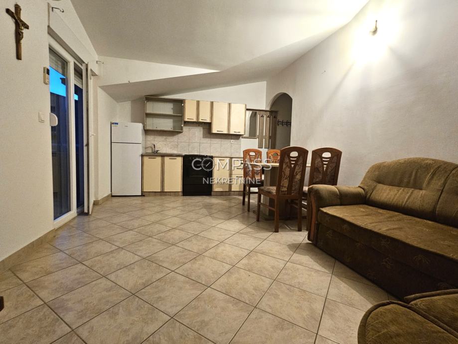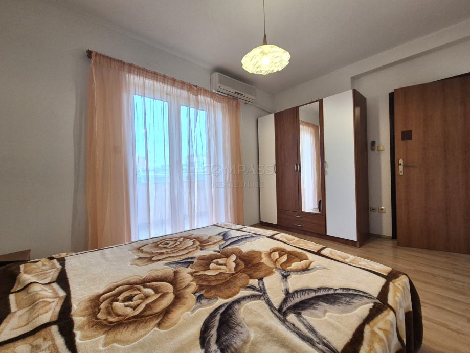 Posredujemo kod najma namještenog dvosobnog stana, na 1. katu privatne kuće. Sastoji se od hodnika, kupaonice, kuhinje, blagavaonice i dnevnog boravka, dvije spavaće sobe te dva balkona. Stanu pripadaju i dva parkirna mjesta ispred kuće. Nalazi se u blizini svih za život potrebnih sadržaja.