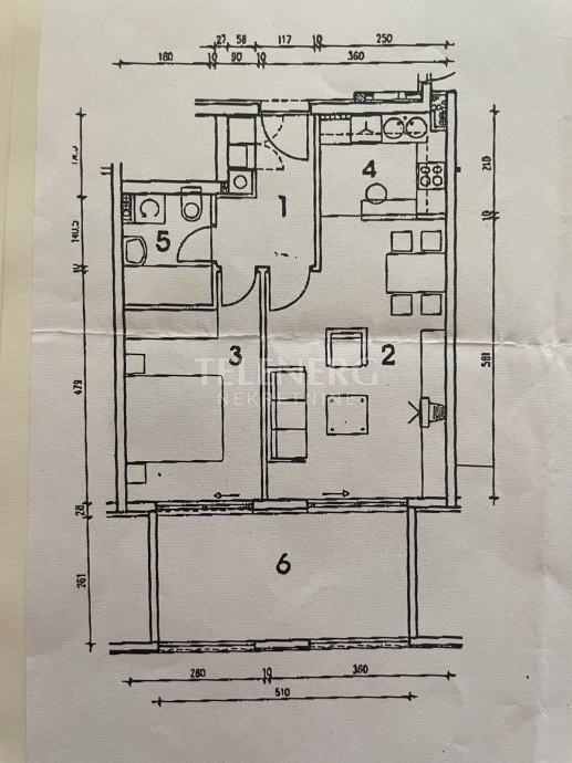 Unutarnja površina stana iznosi 45,63 m2 plus loggia od 12, 93 m2 zapadne orijentacije, a stan se sastoji od: ulaznog hodnika, prostranog dnevnog boravka s kuhinjom i izlazom na loggiu, spavaće sobe s izlazom na loggiu i kupaonice.