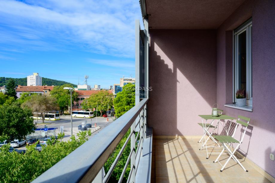 L'appartamento si estende su 66 m² e si compone di un corridoio, due stanze e un'area giorno che comprende la cucina, la sala da pranzo e il soggiorno, che si apre su una splendida loggia con vista aperta su Marjan e sui panorami della città. Lo spazio luminoso e pieno di luce naturale rende l'appartamento accogliente e caldo, creando condizioni ideali per il relax, il divertimento o il lavoro da casa.