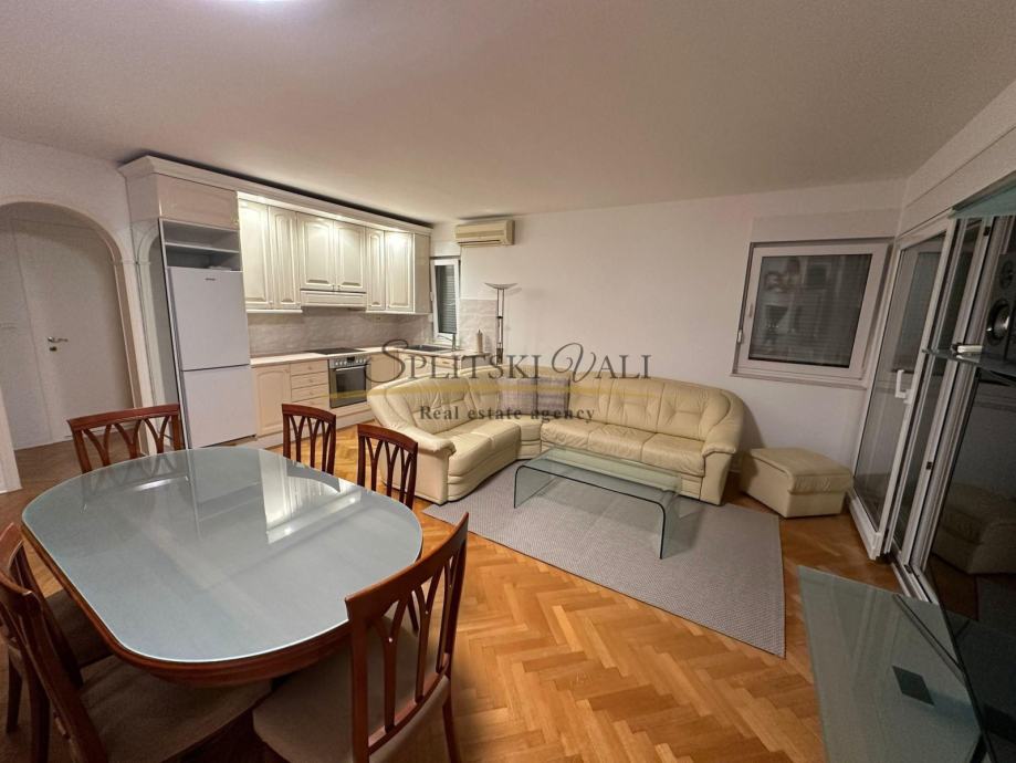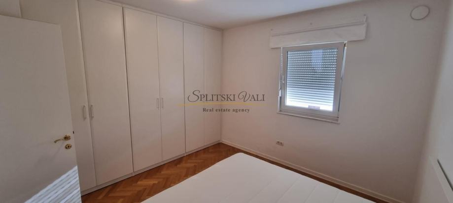 Posredujemo u najmu prostranog dvosobnog stana s pogledom na more, orijentiran prema jugoistoku. Smješten je na Mejama, u jednoj od najljepših četvrti Splita, u manjoj stambenoj zgradi. Lokacija je izvrsna – svega 10-12 minuta laganog hoda do centra grada te u blizini mora i plaže.