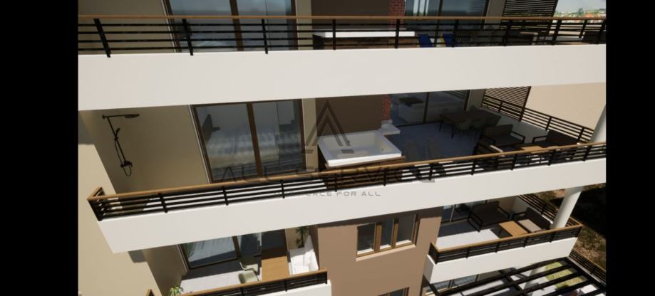 Cijela zgrada je orijentirana prema jugu, a stanovi na nižim katovima imaju djelomičan pogled na more.