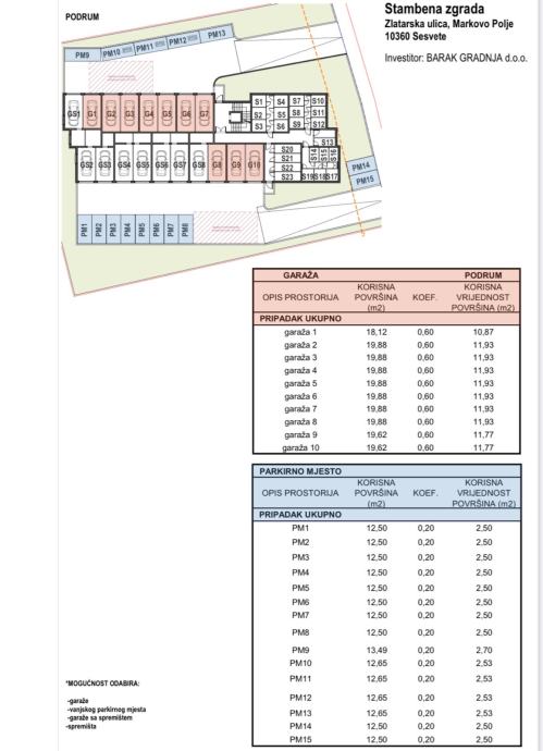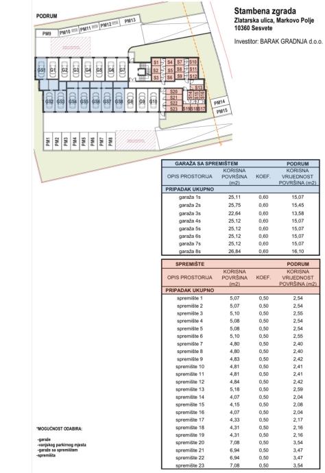 Vanjski nenatkriveni parking, Garaža ili Garaža sa spremištem (1 odabir je obavezan u kupnji stana te se dodatno naplaćuje)