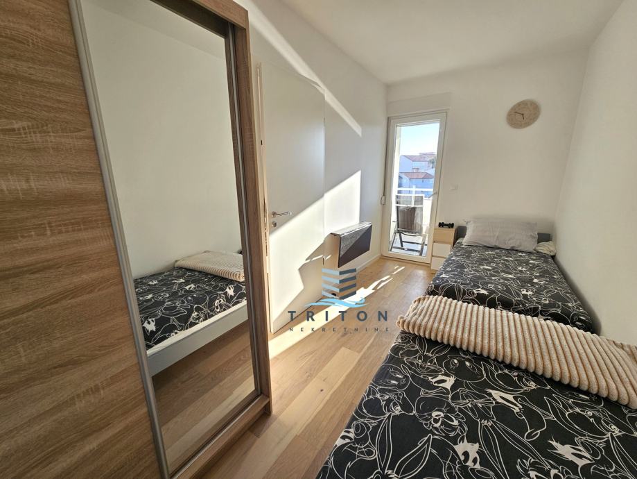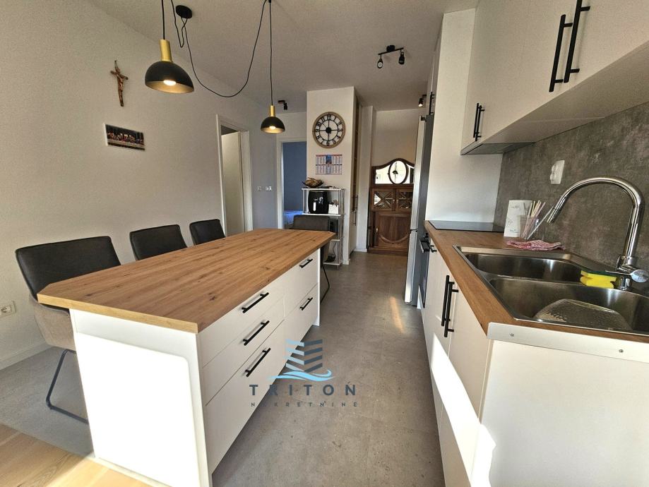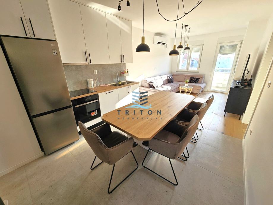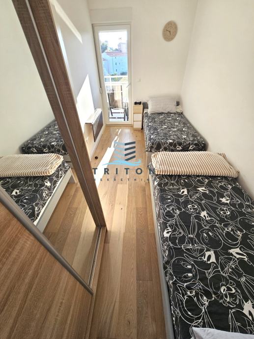 Odličan, osunčan, svijetao i prozračan stan nalazi se u novoizgrađenoj stambenoj zgradi sa liftom na splitskoj Sirobuji u relativnoj blizini City Centra One. Stan je useljen ovo ljeto, opremljen namještajem, tehničkim uređajima i svim kućanskim aparatima potrebnim za svakodnevan život (klima, TV, perilica rublja, perilica suđa, hladnjak, pećnica. ploča i sl.). Stan je orijentacije istok-zapad i nalazi se na četvrtom katu zgrade sa liftom. U naravi se sastoji od dvije spavaće sobe, kuhinje sa blagovaonicom i dnevnim boravkom, kupaonice, hodnika i velike terase/loggie. Stanu pripadaju dva (2) parkirna mjesta sa dodatnim prostorom za parkiranje motora u zatvorenoj garaži koja je liftom povezana sa stanom kao i ostava u prizemlju zgrade.