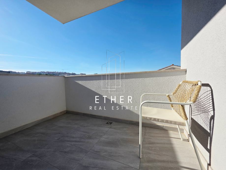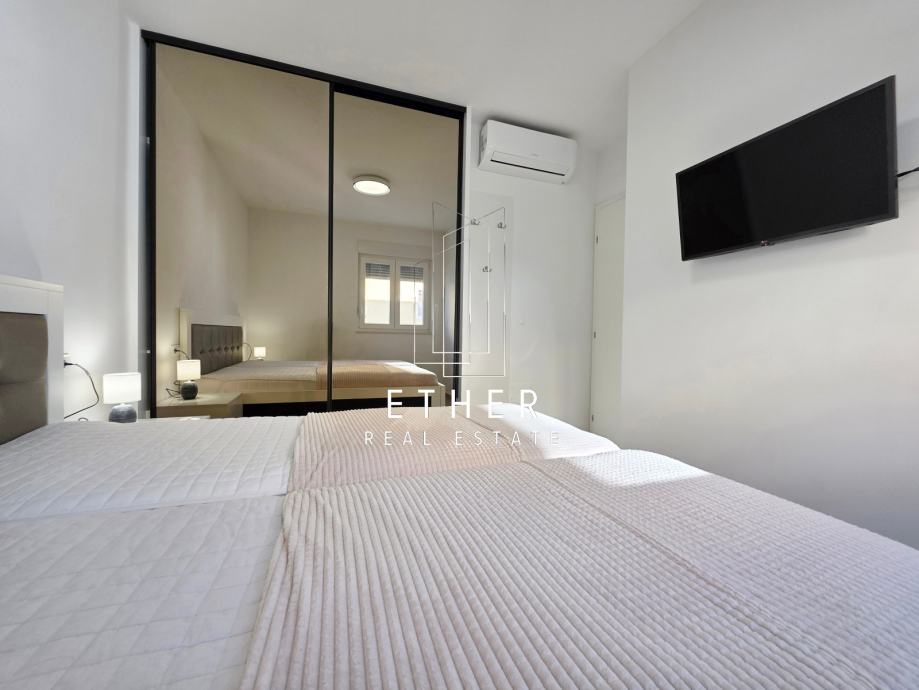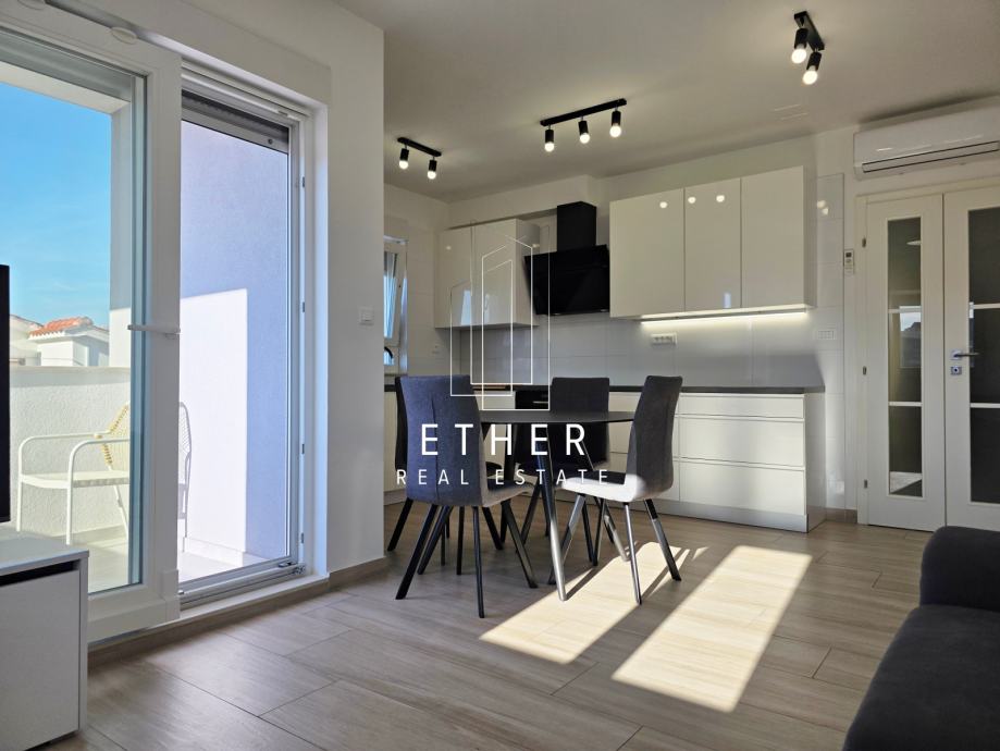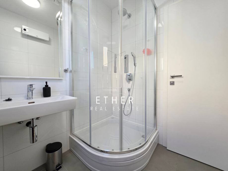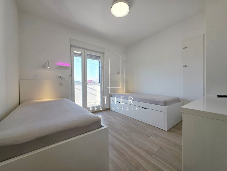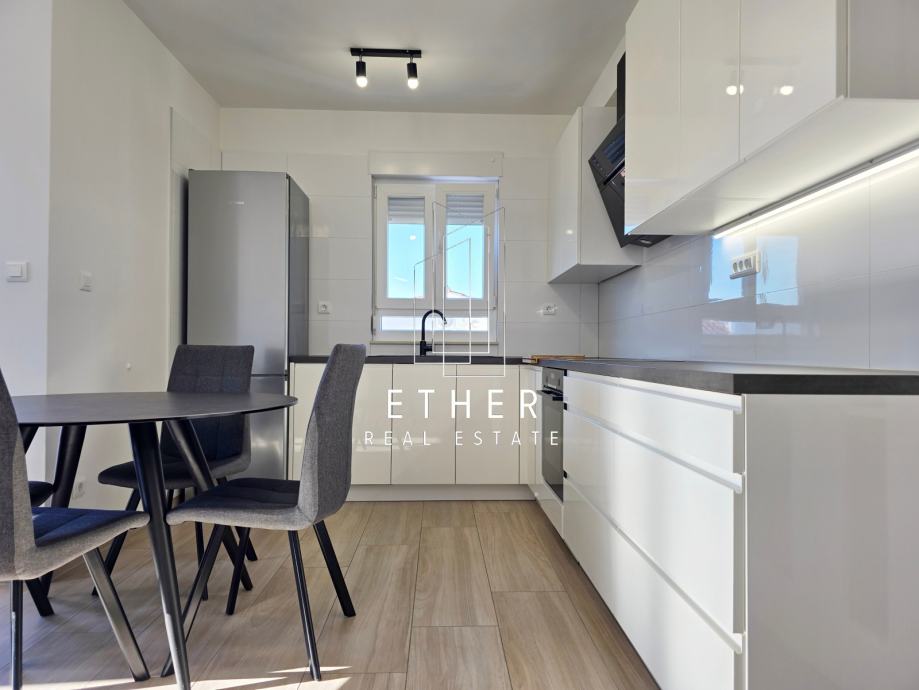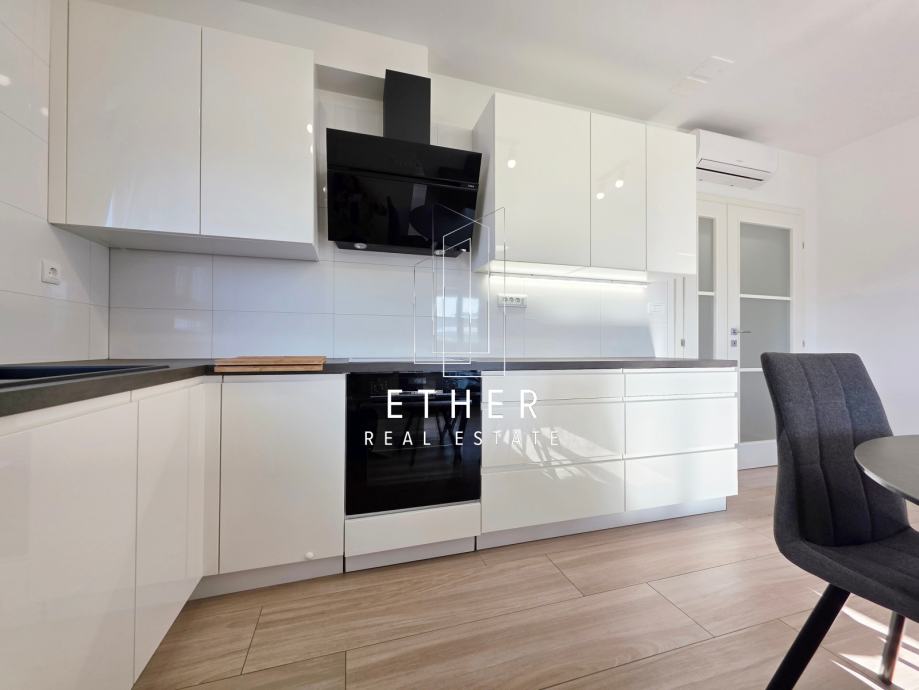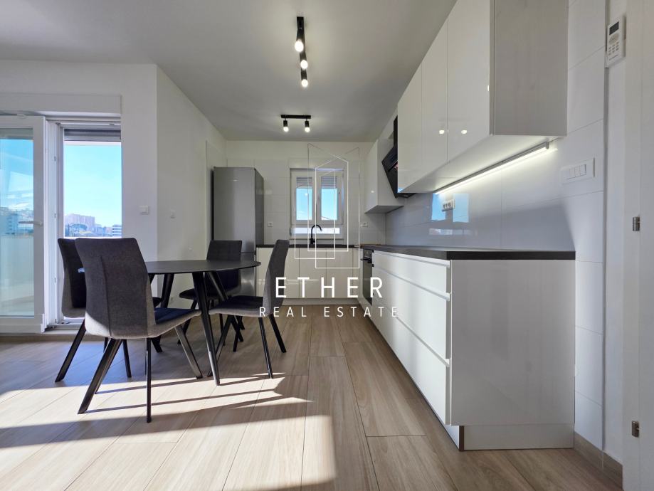 It consists of an entrance hall with built-in wardrobes, kitchen with dining room and living area, two bedrooms, two balconies, bathroom and an additional small toilet. The apartment is especially valuable due to its two balconies - one bedroom has direct access to the balcony, while the kitchen with a dining room and a living room also leads to a second balcony, providing an additional feeling of airiness and comfort.