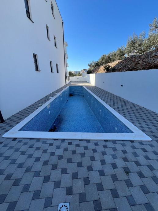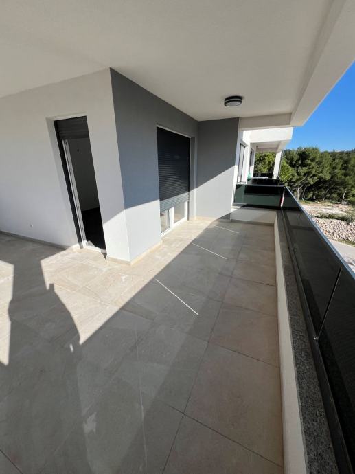 Apartman se nalazi na 2.katu u troetažnoj zgradi iz 2025. godine, sastoji se od dvije spavaće sobe, kupaonice, kuhinje, dnevnog boravka i balkona od 25m2 sa pogledom na more.Stan ima podno grijanje, električne rolete na prozorima i komarnike.Zgrada ima zajednički bazen.