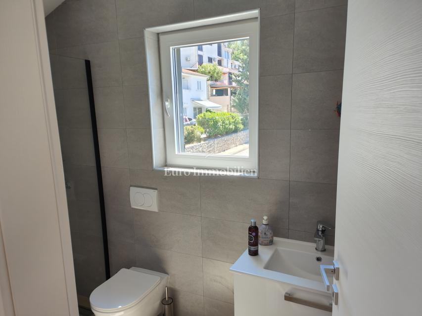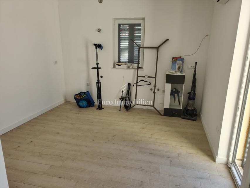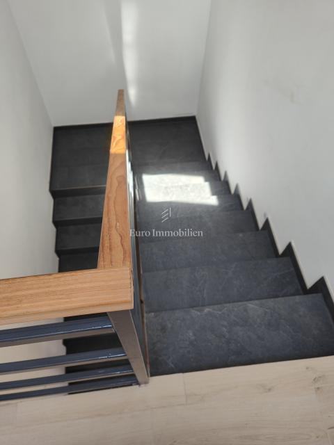 Na prvoj etaži nalaze se dnevni boravak s kuhinjom i blagovaonicom, WC, izba i terasa, a na drugoj dvije spavaće sobe i dvije kupaonice. Stanu pripadaju spremište, parkirno mjesto i kućni vrt, s ukupnom površinom svih dijelova 151,15 m² (NKP 99,29 m²).