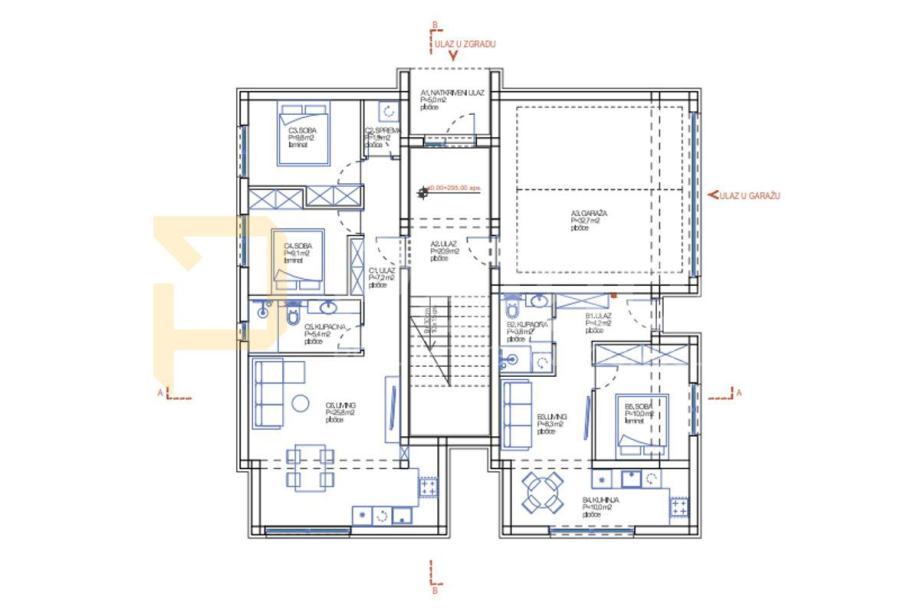 Površina stana: 2 spavaće sobe + kuhinja + dnevni boravak, kupaonica i praonica