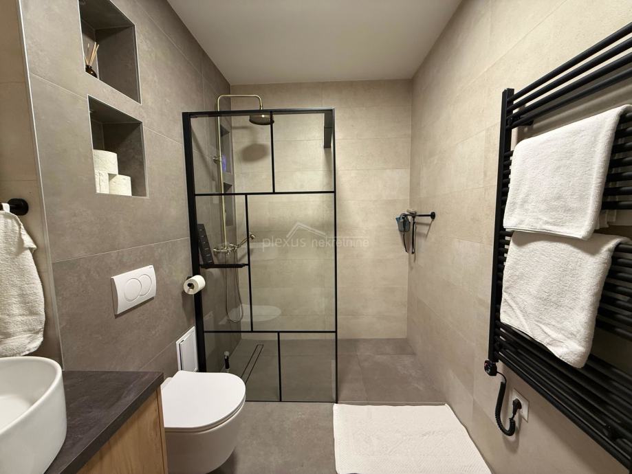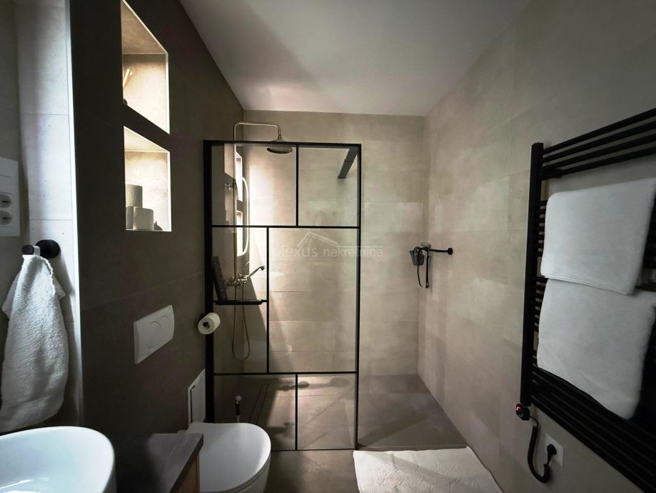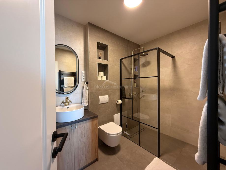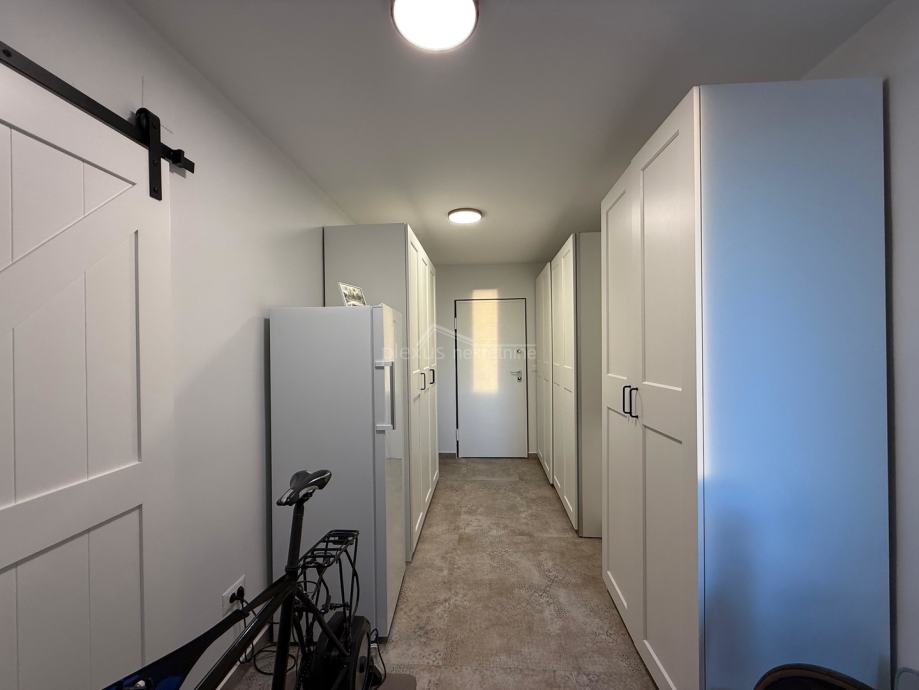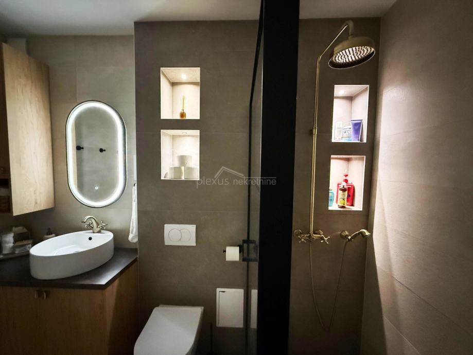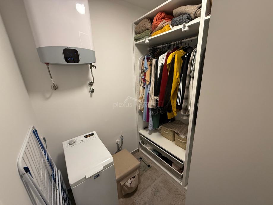 Stan je potpuno adaptiran 2024. godine. Opremljen je kuhinjom s aparatima, perilicom posuđa, perilicom rublja, sušilicom rublja, walk in tuš kabinom, TV-om u dnevnom boravku i bračnoj sobi, što omogućuje ugodno i funkcionalno stanovanje od prvog dana. Dva sanitarna čvora podižu kvalitet stanovanja za višečlane obitelji. Veći dio namještaja i opreme su uključeni u cijenu stana.
