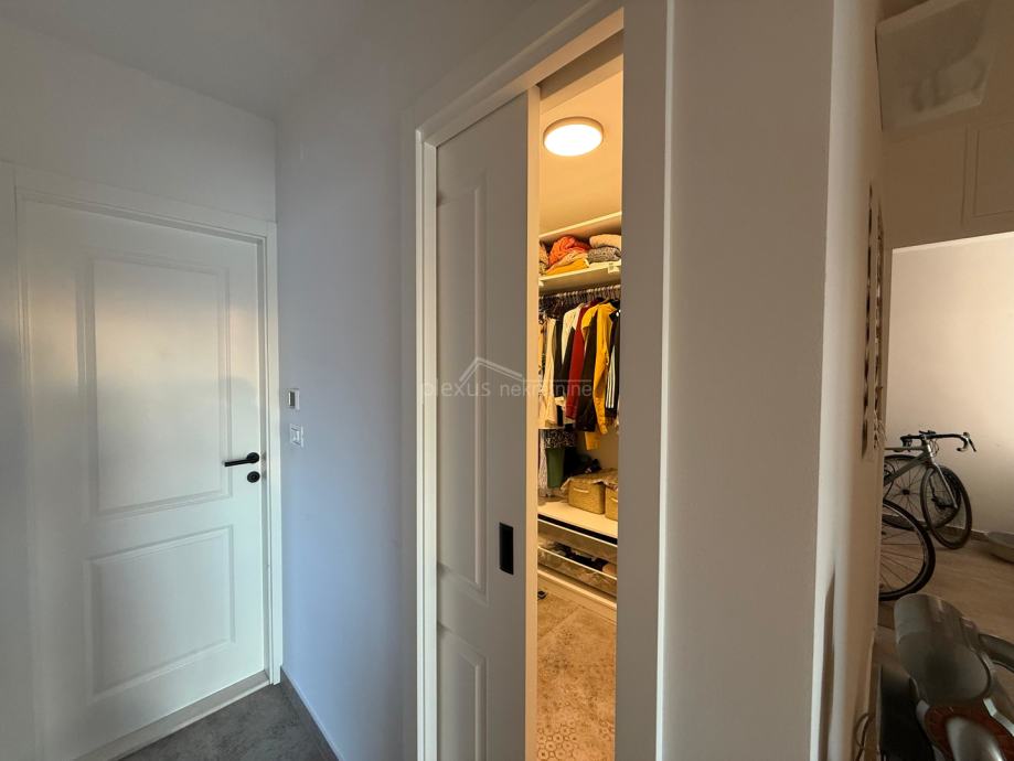 Dodatne pogodnosti uključuju walk in ormar kao i veliki broj ormara u predsoblju koji osiguravaju dovoljno prostora kako bi prostor u sobama bio slobodniji. Dva dizala osiguravaju lakši pristup. Za ugodnu klimu u stanu brinu se tri klima uređaja kao i podno grijanje u kuhinji, blagovaonici i kupaonici, a optička infrastruktura osigurava brz i stabilan internet. Stan posjeduje energetski certifikat A, što jamči energetsku učinkovitost. U zgradi je planirana energetska obnova 2027 godine što uključuje postavljanje nove termofasade kao i ugradnju solarnih panela koji će prozvoditi električnu energiju potrebnu za sve zajedničke dijelove zgrade.