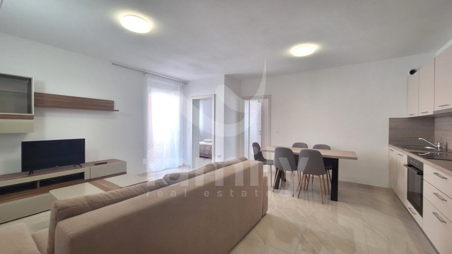 Upravo u Peroju, na veoma mirnoj lokaciji se nalazi navedeni visokokvalitetni stan na drugom katu zgrade površine 61 m2 od sveukupno 10 stambenih jedinica. Stan se sastoji od ulaznog predprostora opremljen cipelarnikom, osvijetljenog dnevnog boravka spojenog sa kuhinjom opremljenom Gorenje induktivnom pločom za kuhanje, perilicom posuđa, pećnice kao i samofiltrirajućom napom, prostorom za ručavanje, dvije komforne spavaće sobe, kupatila opremljenim walk-in tušem, bojlerom i sprovedenim instalacijama za pericilu rublja kao i lođe. Grijanje i hlađenje je regulirano putem jedinice klima uređaja, postavljeno je podno grijanje na struju te je cijeli objekt opremljen PVC stolarijom sa duplim staklima, 7 plinskih komora i termofasadom debljine 10 cm što osigurava odličnu zvučnu i toplotnu izolaciju. Podovi su u cijelom stanu obloženi visokokvalitetnom keramikom. Stan se prodaje potpuno namješten sa svim uređajima kao i jednim parkirnim mjestom.