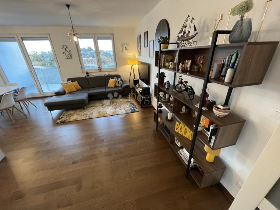 Sastoji se od: open space prostora (dnevni boravak, blagovaona, kuhinja) koji ima izlaz na lijepu lođu, wc-a, te odvojenog spavaćeg dijela u kojem se nalaze dvije spavaće sobe i kupaonica.