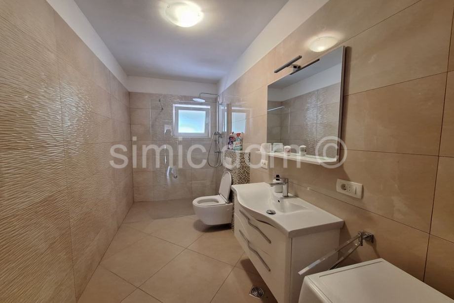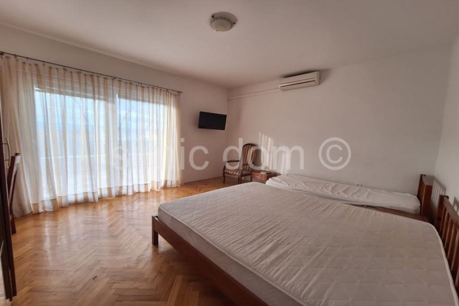 Posredujemo u prodaji vrlo prostranog i izvrsno održavanog stana na mirnoj lokaciji koja je samo 110m udaljena od mora. Stan ima 112,5m2 podne površine, a uključuje dvije spavaće sobe, kuhinju, dnevni boravak, tri kupaonice, prekrasnu vanjsku terasu s pogledom na more te dvije loggie sa sjeverne strane, nudeći tako i mir i privatnost. Riječ je o etažiranoj apartmanskoj kući s ukupno 3 odvojene jedinice, a kuću okružuje i popločana okućnica s velikim parkirnim prostorom (stanu pripadaju dva parkirna mjesta). Iznimna razina opremljenosti i kontinuirano održavanje namještaja i opreme čine ovu nekretninu izvrsnim izborom ne samo za nastavak uhodanog posla najma, već i za miran obiteljski odmor. U neposrednoj blizini je i niz sadržaja poput restorana, trgovina i kafića. Vlasništvo uredno.