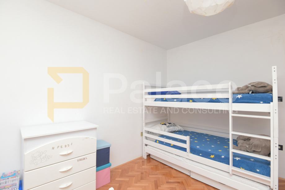 Stan površine 64 m2, ima dvije sobe, hodnik, prostraniju kupaonicu te kuhinju, blagovaonicu i dnevni boravak open-space koncepta. Struja i voda kompletno su promijenjeni prije deset godina.