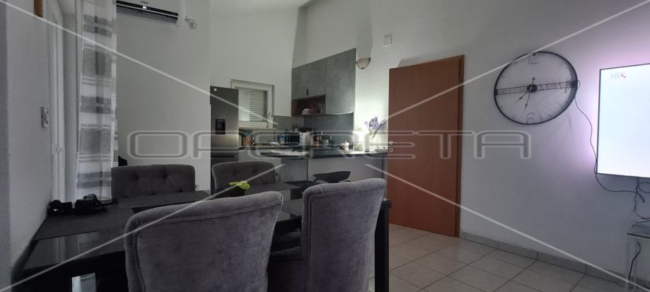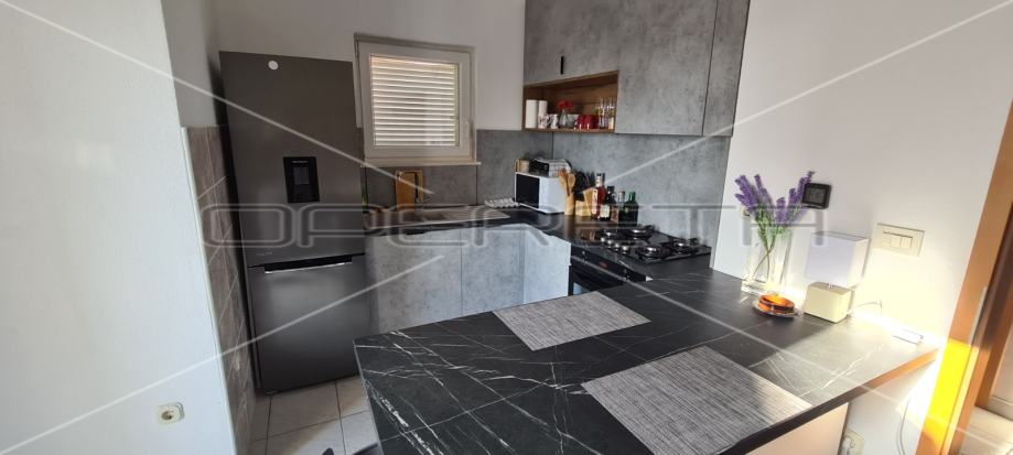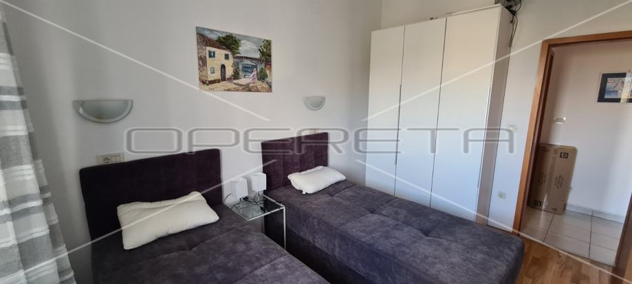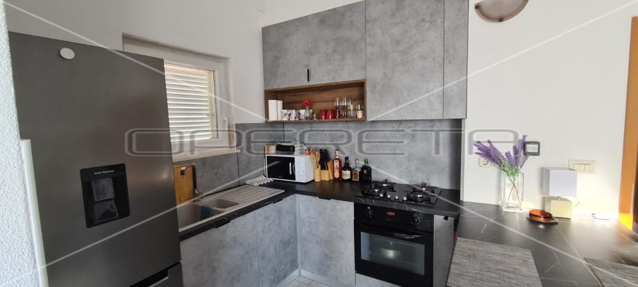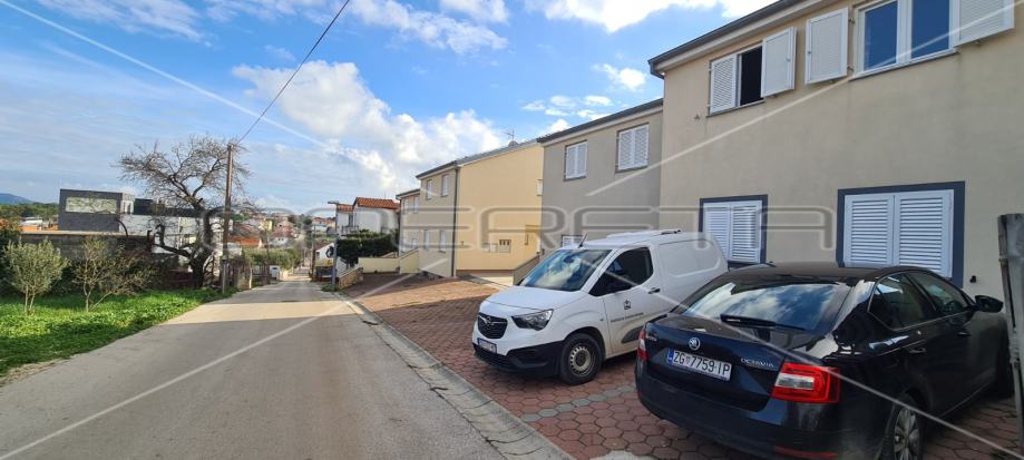 U dvorištu zgrade nalaze se dva parkirna mjesta koja pripadaju stanu. S obzirom na visinu stropova od 4,2 m postoji mogućnost izvedbe galerije. Zgrada se nalazi u mirnom okruženju, dok su svi potrebni sadržaji za život na udaljenosti od 5 minuta šetnje. Do prve plaže ima 900 m, odnosno 10ak minuta pješice.