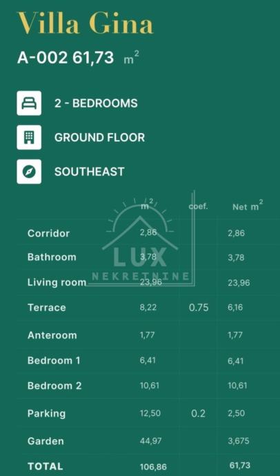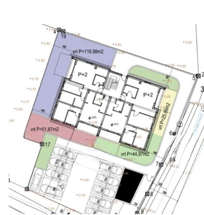 Stan ima i dva parkirna mjesta i VRT (pov. 44.97 m2).