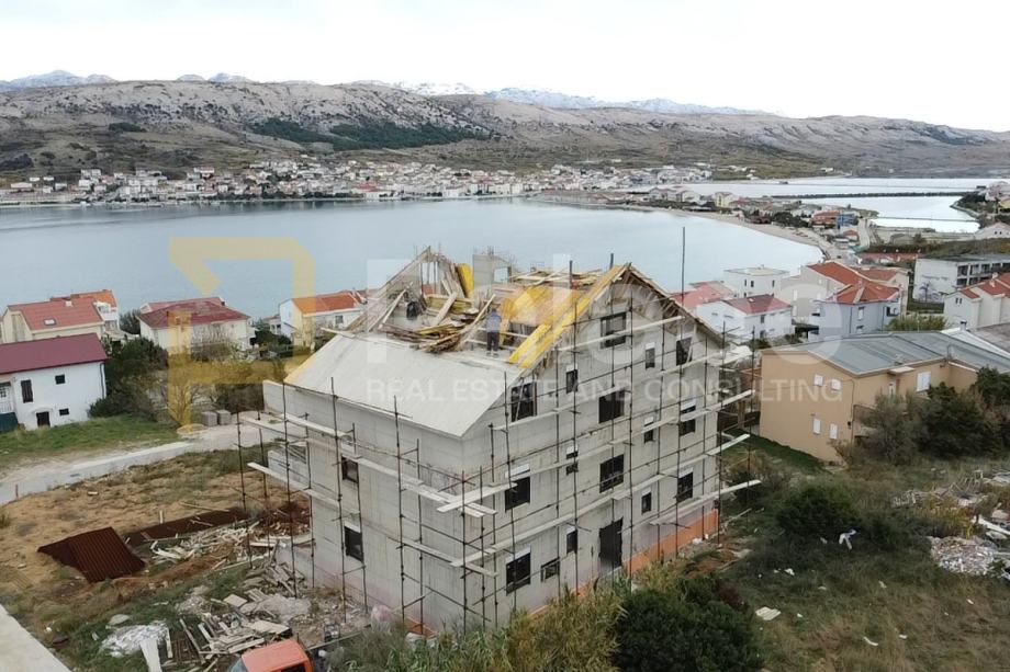 Prodaju se stanovi u novoj, manjoj stambenoj zgradi smještenoj na otoku Pagu. Zgrada se sastoji od ukupno pet stanova: dva dvosobna stana u prizemlju, dva dvosobna stana na prvom katu te prostranog četverosobnog penthousea na drugom katu. Ova moderna nekretnina osmišljena je kako bi pružila maksimalnu udobnost i luksuz, uz neodoljiv panoramski pogled na more koji se pruža iz svakog stana.