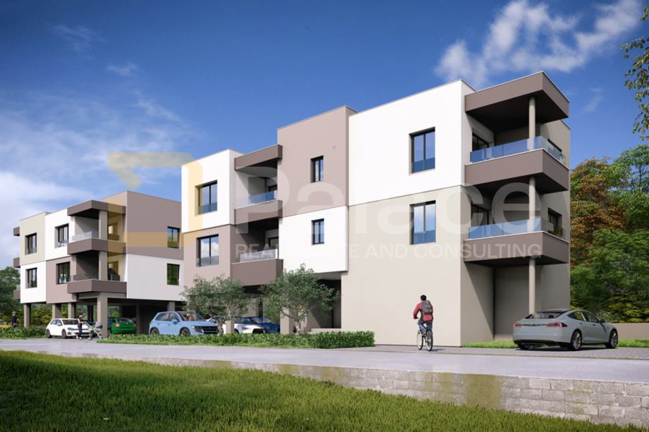 Površine 72 m2, koju čini dvosoban stan s pripadajućom terasom, dva parkirna mjesta te spremištem 7 m2. Sam stan površine 60,37 m2 sastoji se od dvije spavaće sobe, kupaonice, dnevnog boravka, kuhinje i blagovaonice. Spavaće su sobe površine 11,39 m2 i 11,56 m2, kupaonica 5,28 m2, dnevni boravak zauzima 11,87 m2, a kuhinja i blagovaonica ukupno 14,68 m2. Stanu pripada i terasa površine 6,17 m2 (izračun po koeficijentu 3,09 m2). Stan je opremljen podnim grijanjem, kao i klima uređajima. Keramika je vrhunske kvalitete, talijanska, te se pazilo i na odabir sanitarija, kao i stolarije. U podrumu zgrade se nalaze spremišta i ovom stanu pripada jedno površine 7 m2 (izračun po koeficijentu 3,5 m2). Ispred zgrade se nalaze i pripadajuća dva parkirna mjesta (izračun po koeficijentu 5 m2). Stan će biti gotov do trećeg mjeseca 2026. godine, te je moguća i kupnja na kredit uz kaparu od 20%.