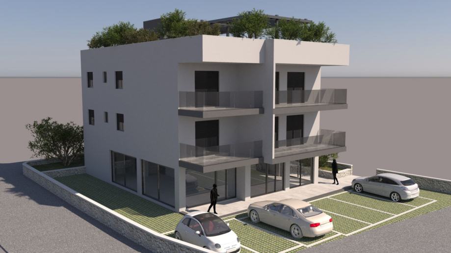 Novogradnja se gradi na dva kata s četiri stana i dva poslovna prostora, a planirani završetak je predviđen za početak 2025. godine.
