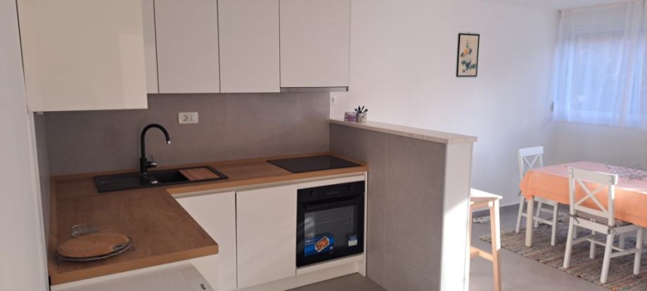 Stan je u potpunosti renoviran i spreman za useljenje. Opremljen je štednjakom, pećnicom, perilicom suđa, perilicom rublja, frižiderom, zamrzivačem, klima uređajem i grijačim pločama, te televizijom uz paket tv programa i neograničeni internet.